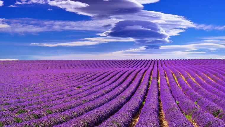 たとえば、**低めのアングルからラベンダー越しに空を撮る**と、奥行きと広がりが出て印象的な写真になります。